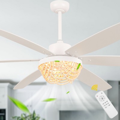 Bella Depot 65" Bohemian White Wooden Ceiling Fan with Light