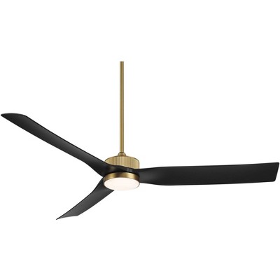 Casa Vieja 60" Montage Modern Indoor Outdoor Ceiling Fan 3 Blade LED Light Remote Control Soft Brass Finish Black Blades Bedroom Patio Damp Rated