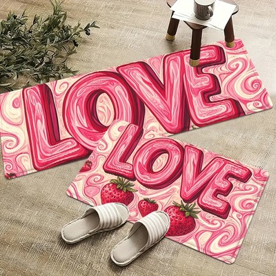Lomsoe 2/3pcs Valentine's Day Kitchen Decor Mat, LOVE Pink Pattern Floor Mat, Comfortable, High Quality, Machine Washable.