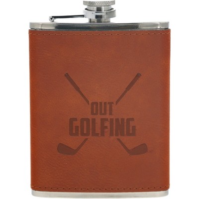 Pavilion Gift Company - Out Golfing - PU Leather & Stainless Steel 8 oz Flask - Drinkware