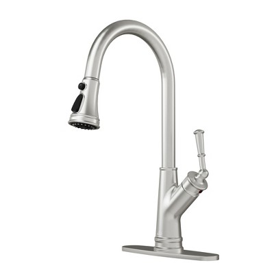 - brushed stainless kitchen faucet