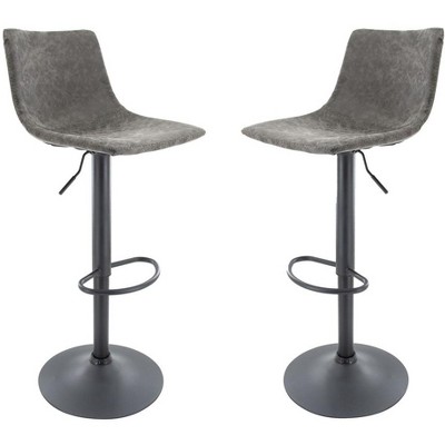 HomeRoots Set of Two Black and Silver Metal and Faux Leather Low Back Adjustable Height Bar Chairs