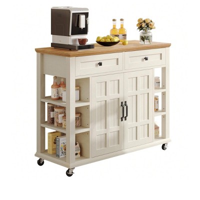 sumyeg 45" Solid Wood Kitchen Island with Butcher Block and Open Shelves for Small Spaces