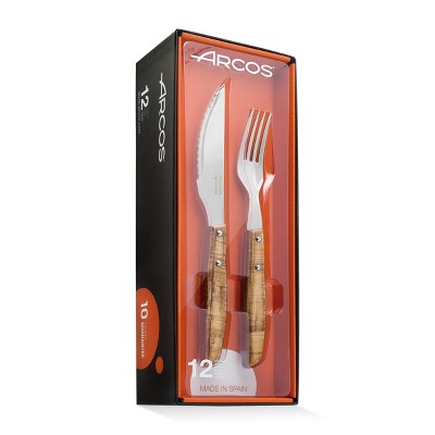 Arcos 4pc The Origin Steak Set Wood: Stainless Steel Blades, Resin Handles, Hand Wash, 10-Year Warranty, Cutlery Set