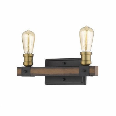 Kirkland 2-Light Industrial Wall Sconce - Damp Rated, Dimmable, Faux Barnwood Design