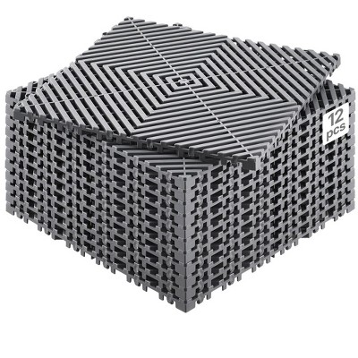 VEVOR Interlocking Drainage Mats 12"x12", 12-Pack, Non-Slip Gray PP Tiles for Garage, Garden, Kitchen & Outdoor Use