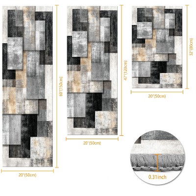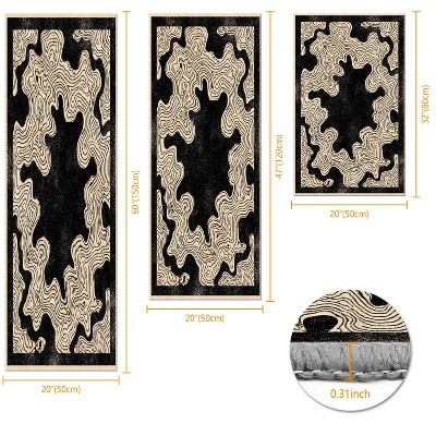 3Pcs Kitchen Rug Set Non-Slip Washable Abstract Soft Mat for Kitchen Bathroom Hallway Laundry Sink Floor