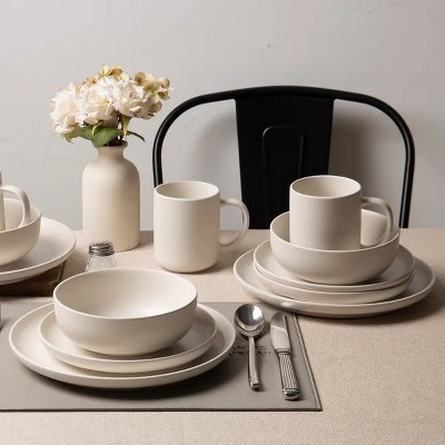 12-Piece Stoneware Dinner Plates Bowls Sets | Microwave & Dishwasher Safe, Non-Toxic Dinner Plates Bowls Set | Stackable Matte Glaze Kitchenware