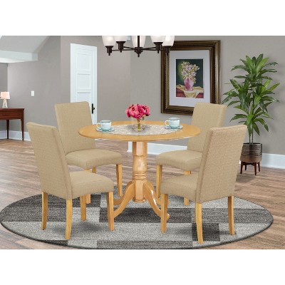 HomeStock 5 Piece Kitchen Table & Chairs Set Includes a Round Dining Room Table with Dropleaf and 4 Dining Chairs, 42x42 Inch, Linen White