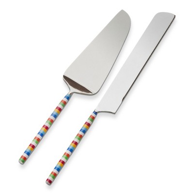 Nambe Dazzle Cake Knife & Server Set, 18/10 Stainless Steel Dessert Serving Utensils with Faceted Handles, Elegant Wedding & Celebration Tableware