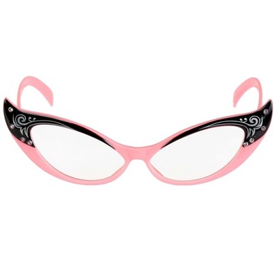 HalloweenCostumes.com One Size Fits Most Women Women's Pink/Clear Vintage Cat Eyes Glasses | Halloween Costume Accessory, Black/Pink/Clear