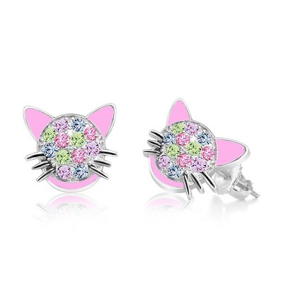 Chanteur Hypoallergenic Kids Jewelry Accessories Cat Pink Multi-color CZ White Gold Palladium Plating Stud Earrings Surgical Titanium Posts