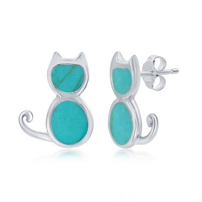 Caribbean Treasures Sterling Silver Larimar Cat Stud Earrings - Blue