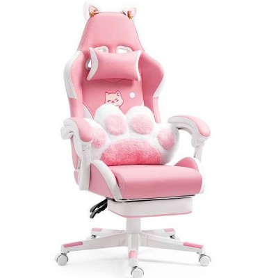 Kumasinova Cute Cat Gaming Chair,Ergonomic Office Chair with Removable Ears,Cat Paw Lumbar Cushion for Girl Teen,Desk Chair Comfy for Home Office