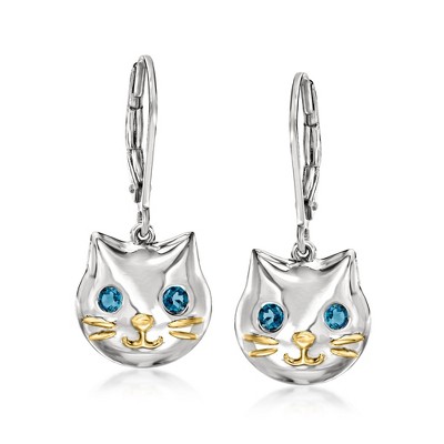 Ross-Simons 0.20 ct. t.w. London Blue Topaz Cat Drop Earrings in Sterling Silver With 18kt Gold Over Sterling