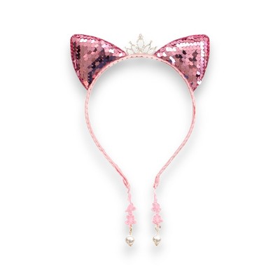 Summer Crystal - Small Sequin Cat Ears Headband with Pearl Earring Pendants - 1 Pack