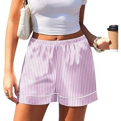 Ekouaer Women Satin Silk Shorts Summer Casual Elastic Waist Lounge Pajama Shorts Beach Vacation Clothes with Pockets