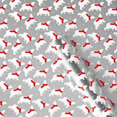 30" 25 sq ft Christmas Roll Wrap Red White Polar Bears on Silver - Wondershop™