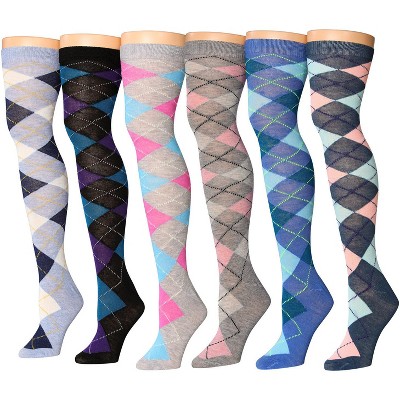 Isadora Paccini Womens 6 Pairs Vibrant Argyle Collection Over The Knee High Socks