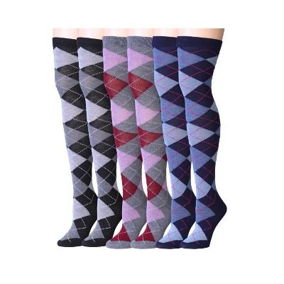 Isadora Paccini Womens 3 Pairs Argyle Fusion Symmetry Solid Colors Pattern Over The Knee High Socks