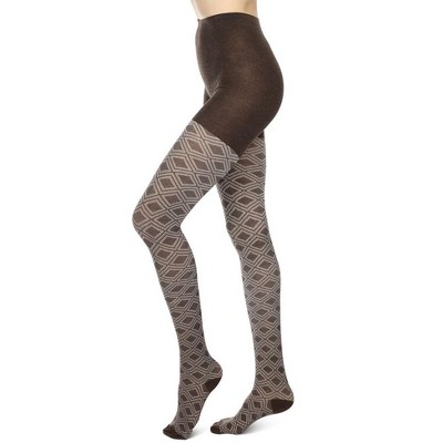 Memoi Diamond Daze Cotton Blend Sweater Tights Brown Heather S-M