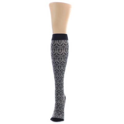 Memoi Women's Sweet Dazzle Cotton Blend Knee High Socks Black One Size