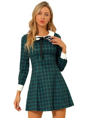 INSPIRE CHIC Women's Peter Pan Collar Fit and Flare Mini Plaid Tartan A Line Dresses