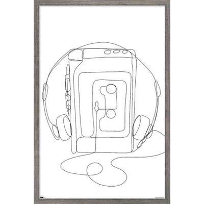 Trends International LINE AND BRUSH - Continuous Line Cassette Player Framed Wall Poster Prints