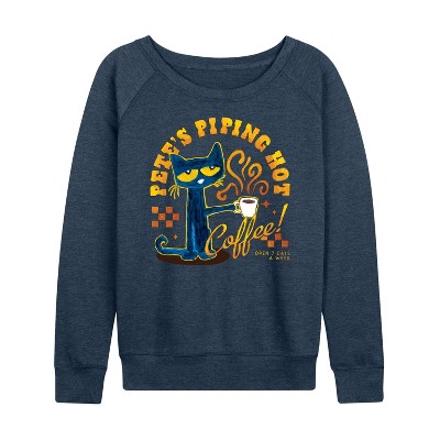 Women's - Instant Message - Star Cat Lightweight French Terry Wide Neck Long Sleeve Graphic Shirt