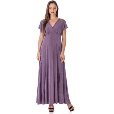 24seven Comfort Apparel Womens Pink Floral Elbow Sleeve Casual A Line Maxi Dress