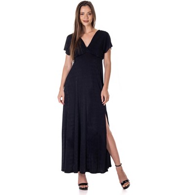 24seven Comfort Apparel Womens Black and White Print Sleeveless Side Slit Maxi Dress