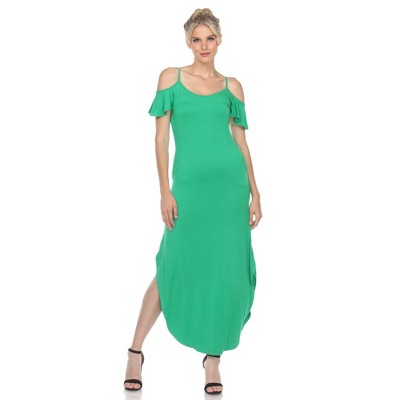 24seven Comfort Apparel Ruffle Cold Shoulder A Line Maxi Dress