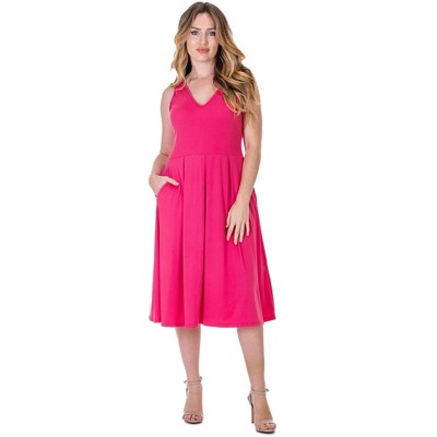 Maternity Fit and Flare Sleeveless Pocket Midi Dress - 24seven Comfort Apparel™