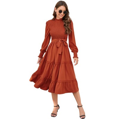 Allegra K Women's Fall Long Sleeve Collar Tie Mock Neck A Line Elegant Midi Dress