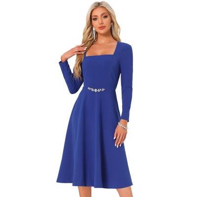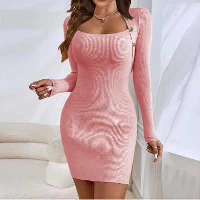Womens Dress Square Neck Button Detail Bodycon Ribbed Knit Sweater Dress