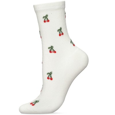 Memoi Women's Plush Chicken-Themed Embellished Crew-Length Lounge Sock White One Size