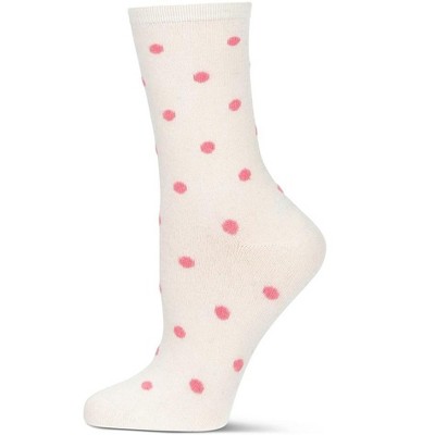 Memoi Women's Cherry On Top Cashmere Blend Crew Socks Ivory 9-11