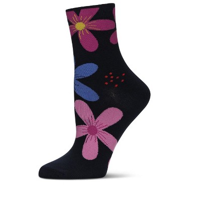 Memoi Women's Garden Floral Combed Cotton Crew Socks Bright Navy 9-11