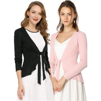Coolmee Women Crochet Cardigan Tie Front Hollow Out Long Sleeves Below Hip Knit Cardigans Tops