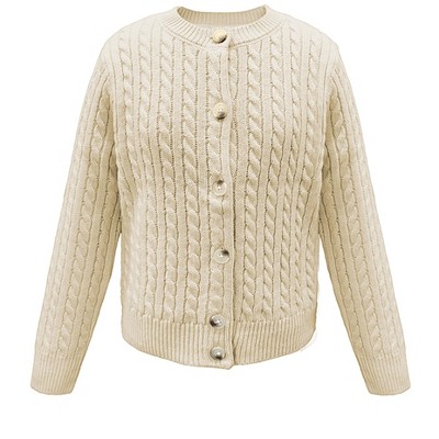 Girl's Cardigan Sweaters Open Front Long Sleeve Button Down Knit Ladies Wool Coats Causal Tops