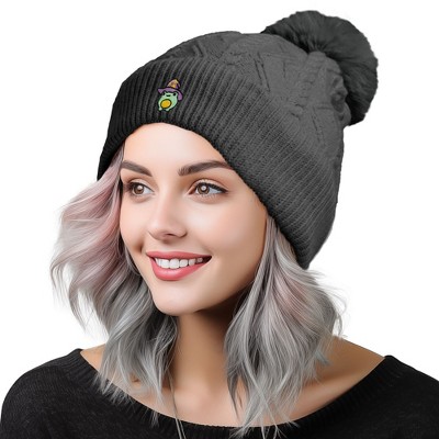 Wrapables Cable Knit Faux Fur Pom Pom Beanie, Adult Gray