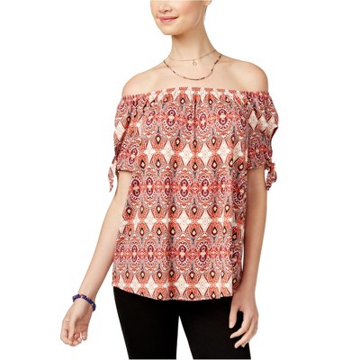 Hippie Rose Womens Tie-Sleeve Pullover Blouse, pinktile, Medium