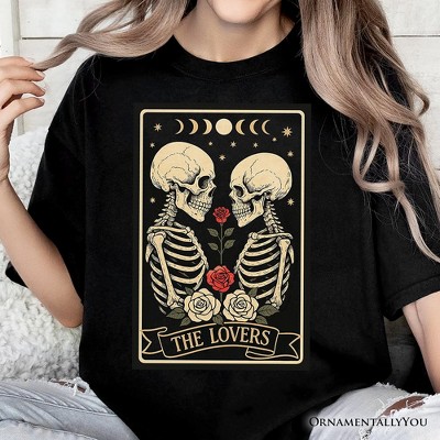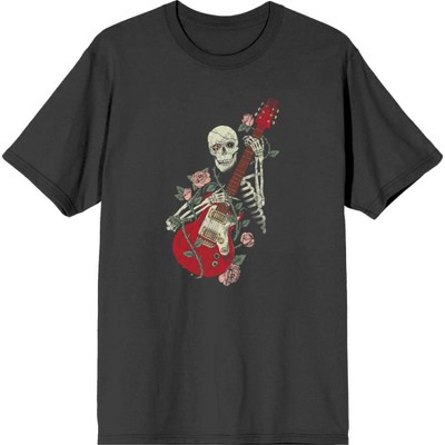 Skeleton Guitar Edgy Music Rose Adult Crew Neck Short Sleeve Tee