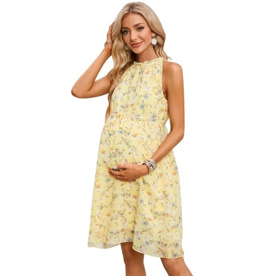 BLUEMING Maternity Dress Front Tie Knot Midi Dress Short Circle Sleeve Bow Tie Highwaist Shirred Back Dress for Pregnancy Women