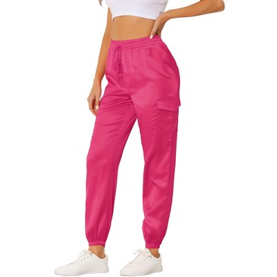 INSPIRE CHIC Women's Satin Drawstring Elastic High Waist Shiny Silky Cargo Pants