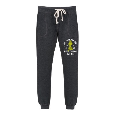 Women's The Grinch The Grinch It's Fine I'm Fine Everything Is Fine Graphic Fleece Joggers - Heather Charcoal - Small