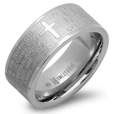 Steeltime stainless steel 'padre nuestro' lord's prayer ring