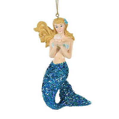 Kurt S. Adler 4.25 In Mermaid With Glittered Tail Tree Ornament , Shells Swim Aquatic Tails (1PC)