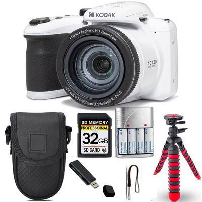 Kodak PIXPRO AZ405 Digital Camera (White)+Extra Batteries + Case + 32GB Kit