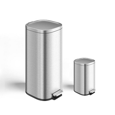 30L & 6L Stainless Steel Step Trash Can Set of 2, 8+1.6 Gallon Rectangular Kitchen Trash Can with Quiet Close Lid, Hands-Free Foot Pedal